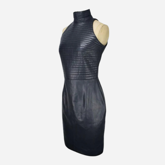 Solid Real leather Bodycon Women Sleeveless Mini Quilted DressRegular price $99.00 USDRegular priceUnit price / per-
