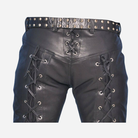 Genuine Leather Pants With Adjustable Lace Up Closure Black PantsRegular price $99.00 USDRegular priceUnit price / per-