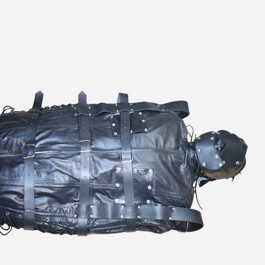 Genuine Leather Sleepsack With Hood Steel Bones, Lacing And Belts