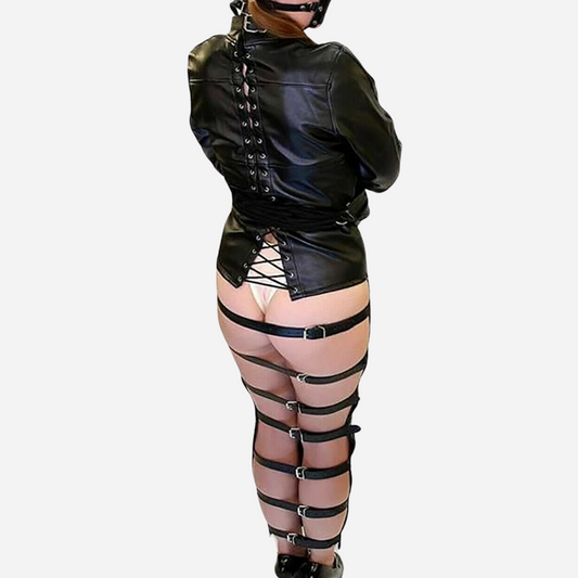 Women Real Leather Overall Straitjacket & Leg Binder Binding Restricted Dress