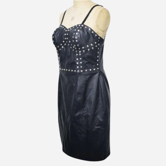 Women Studded Real Leather Bodycon Casual Formal Dress