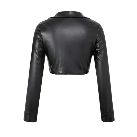 Oliao Leather Button Down Crop Top